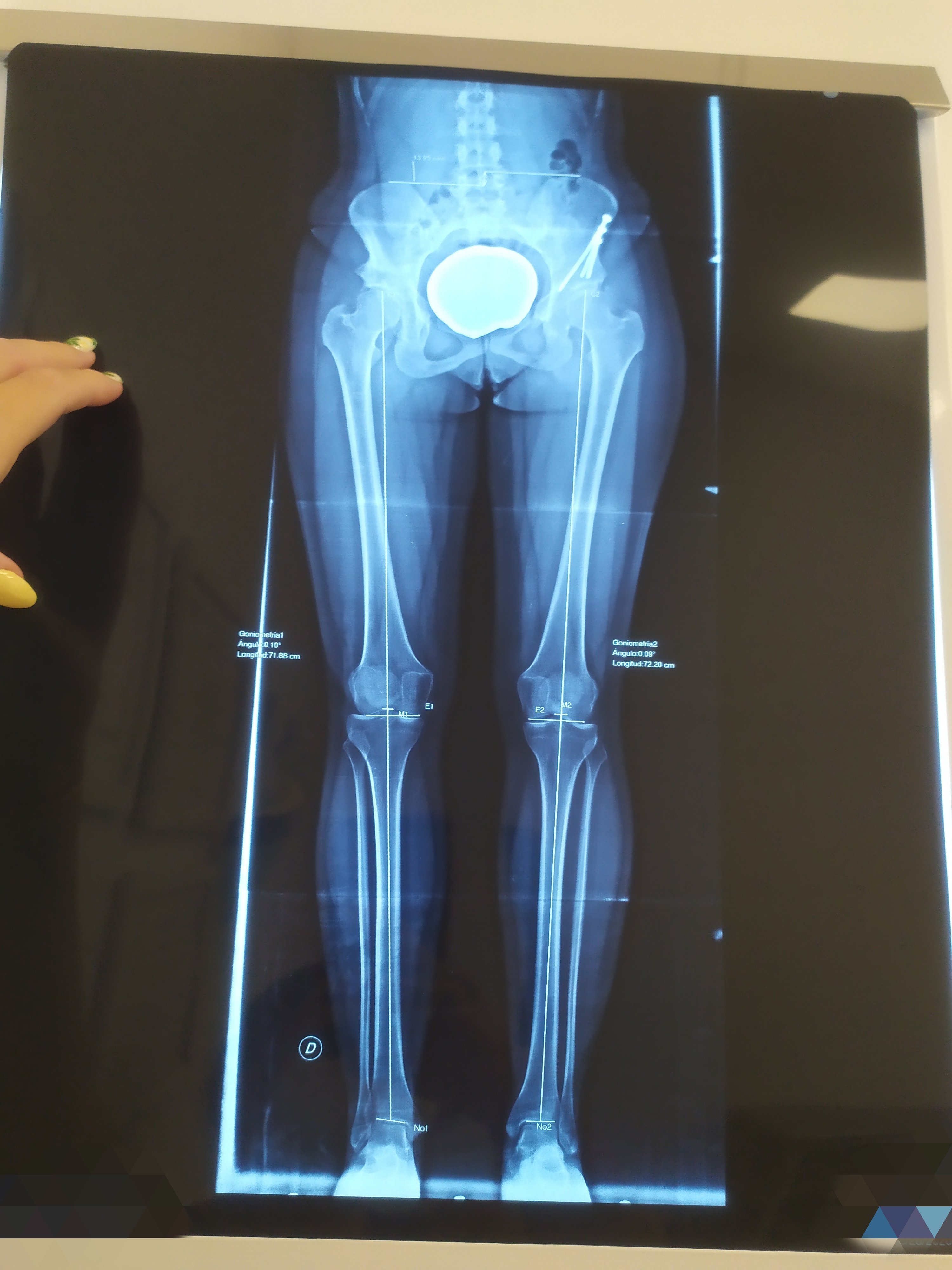 Decidieron hacerme una radiografía de medición de miembros y efectivamente, salía lo que pensábamos todos. Tengo una pierna un poco más larga que la otra. No es algo que se note a leguas, pero sí algo que me ha provocado un pinzamiento en la L4 y L5 y probablemente por lo que la primera operada, que es la pierna más corta, me duela.