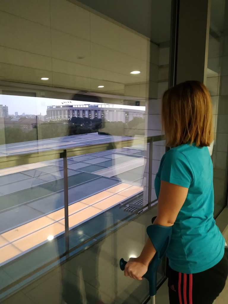 Por Instagram os he dejado algunos vídeos con los fisios. Como ya sabía mas o menos del año pasado, no me costó apenas hacerme a las muletas y a andar.