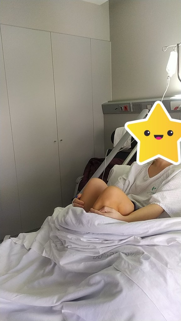 15/01/2020 me fui al hospital para hacer el ingreso. Sobre las 12:30 un pelín más, me bajaron a la sala de espera de quirófanos. Allí estuve hasta las 3 de la tarde esperando a que me pasaran. Por lo que se ve hubo un par de urgencias bastante complicadas, y eso retrasó unas cuantas operaciones. Pasé a la habitación donde te cambias para esperar que venga el celador a llevarte a quirófano. Esta vez estaba mi pareja y mi madre conmigo y yo la verdad un poco «acojonada», pero con una sonrisa de oreja a oreja.